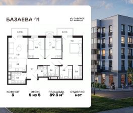 Продается квартира в ЖК Шаховская с 3 спальнями на 5 этаже 5 этажного дома. Общая площадь: 89.3 кв.м. Высота потолков 2.72 м. Срок сдачи 2 квартал 2027 г. Эскроу-счет. Застройщик ГК "Садовое кольцо".