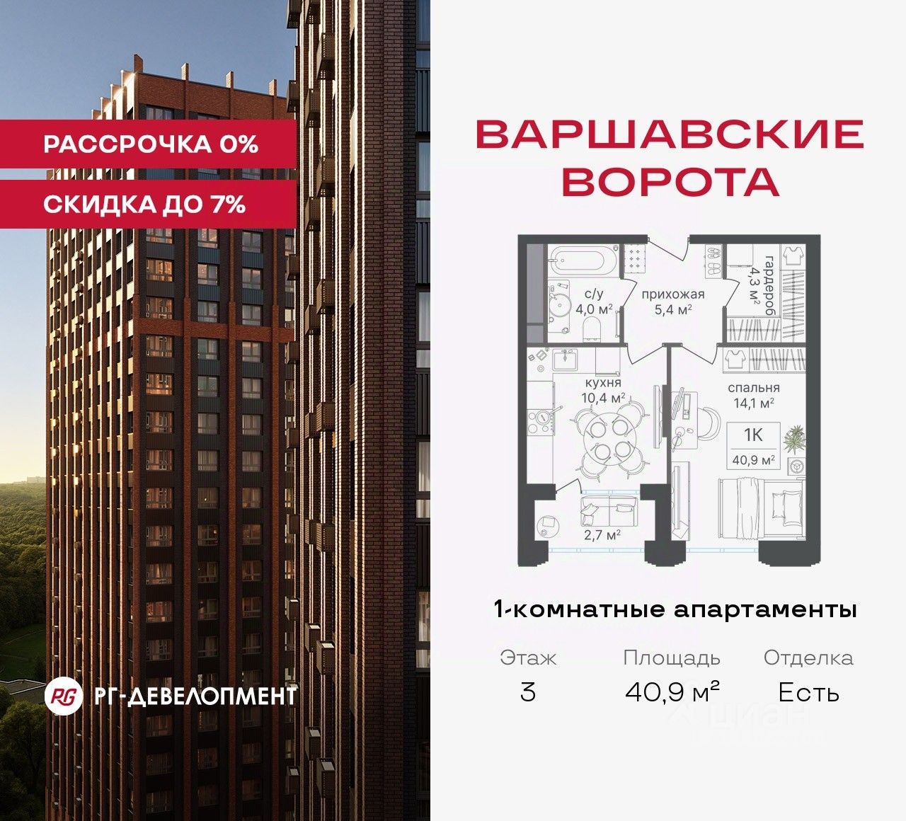 Продаются 1-комнатные апартаменты 40,9 кв.м. в МФК "Варшавские ворота" на 3-м этаже 30 этажного дома. МФК "Варшавские ворота" — это проект, в котором учтен широкий спектр требований: от транспортной доступности и развитой инфраструктуры до архитектурной выразительности и экологического окружения.