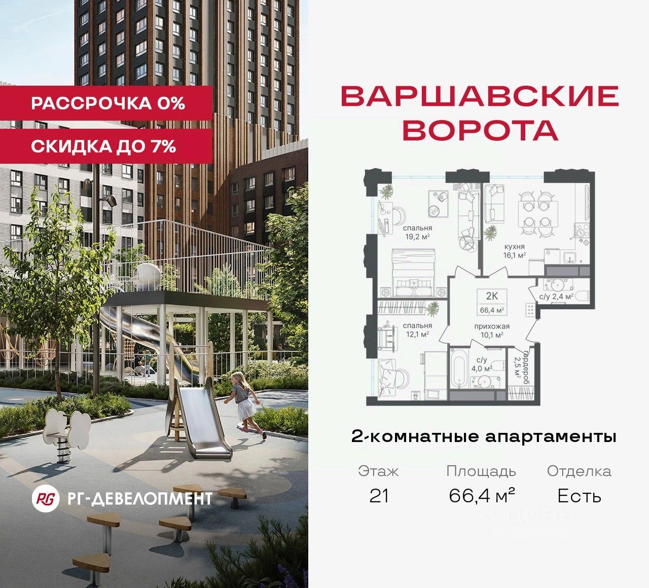 Продаются 2-комнатные апартаменты 66,4 кв.м. в МФК "Варшавские ворота" на 21-м этаже 30 этажного дома. МФК "Варшавские ворота" — это проект, в котором учтен широкий спектр требований: от транспортной доступности и развитой инфраструктуры до архитектурной выразительности и экологического окружения.