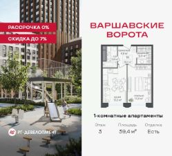 Продаются 1-комнатные апартаменты 39,4 кв.м. в МФК "Варшавские ворота" на 3-м этаже 9 этажного дома. МФК "Варшавские ворота" — это проект, в котором учтен широкий спектр требований: от транспортной доступности и развитой инфраструктуры до архитектурной выразительности и экологического окружения.