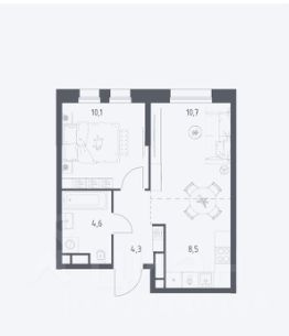 Удобная планировка, с просторной кухней-гостиной 19,2 кв м и спальня 10,1 кв м, просторный санузел 5,8 кв м