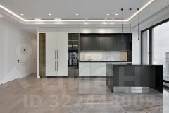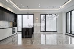 Кухонный гарнитур и остров выполнены на заказ с обрамлением кварцевым агломератом Sapienstone dark marquina. Итальянский смеситель с встроенным фильтром и кипячением Aquahot, раковина от премиального японского бренда Omoikiri с установленным измельчителем отходов. Установлена бытовая техника от элитного бренда Kuppersbusch.