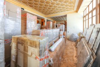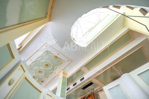 Первый уровень: 4 спальни с гардеробными и санузлами, гостиная 124 кв.м., столовая 48 кв.м. с выходом на террасу 80 кв.м., зимний сад.