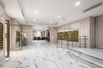 В лобби предусмотрены большие колясочные и удобные зоны ожидания для посетителей, в отделке строительства использован натуральный мрамор.
