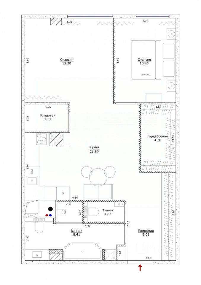 Общая площадь — 70,8 м² по ЕГРН. Наше главное преимущество - продуманная до мелочей планировка с элементами декора. Изолированная спальня 10.45 м², гостиная - 15.20 м², гардеробная - 4.76 м², постирочная и два раздельных санузла, один из которых — 8,41 м². Высота потолков - 3.1 метра. В большом санузле установлена качественная сантехника премиум-класса с просторной ванной и стильной душевой кабиной, а также несколькими сценариями света для создания идеальной атмосферы в любое время суток.