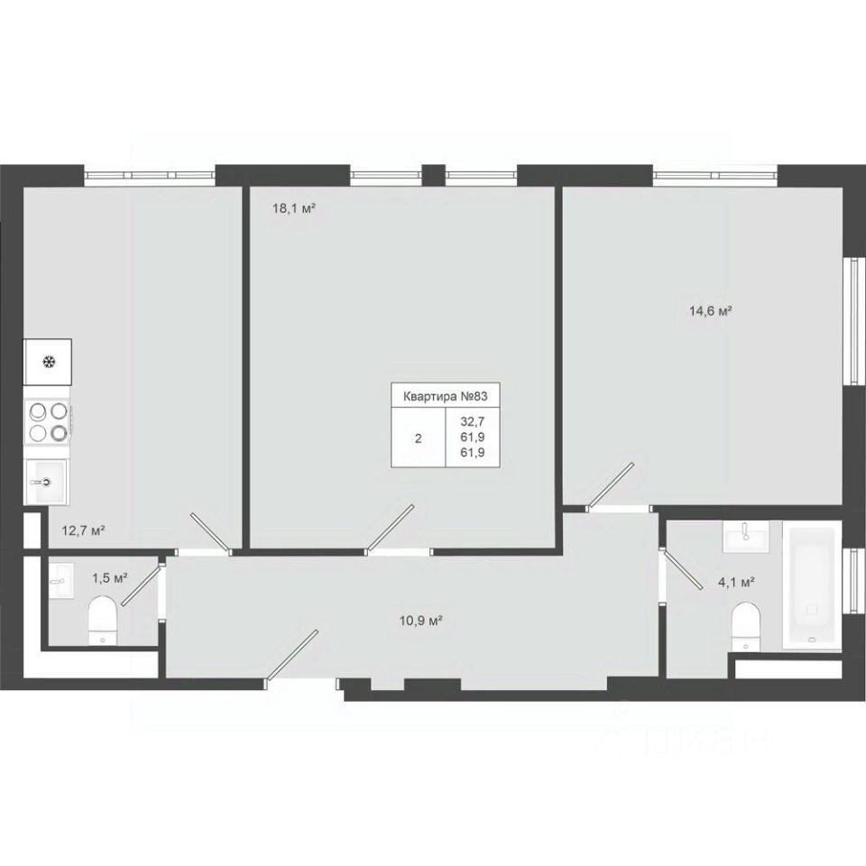 Продается 2-к квартира площадью 61.9 кв.м. на 4-м этаже