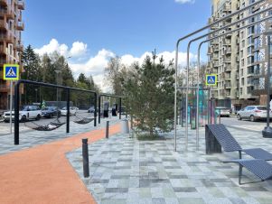 Комплекс имеет собственный выход в парк с прогулочными зонами, стадионом, теннисными кортами.