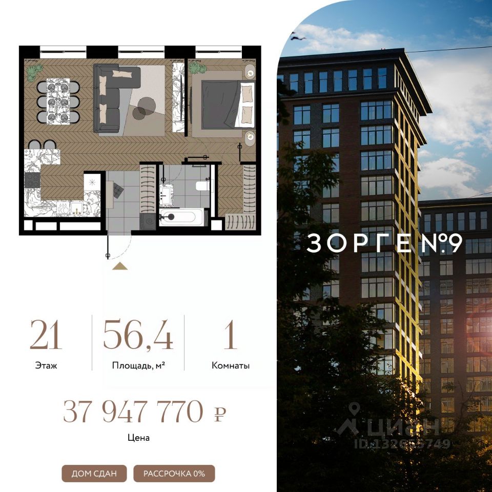 Апартаменты в готовом квартале бизнес-класса от компании St MICHAEL. Всего в комплекс входят 3 стильных высотных корпуса с модной архитектурой, собственным фитнесом и сервисами премиальных отелей. Отличная транспортная доступность и расположение в окружении крупных парковых зон характеризует комплекс как особенно привлекательный для жизни и инвестиционных вложений. На верхних уровнях комплекса расположены функциональные пространства с высотой потолка до 3,17 метров и панорамными окнами. В угловых апартаментах благодаря сплошному остеклению реализован эффект стеклянной стены. Элегантные лобби с дизайнерской отделкой премиальными материалами, lounge-зона для отдыха и встреч с гостями, кафе с камином и легким эмбиентом, стильная отделка холлов гармонично перекликается с фасадами в стиле архитектуры Нью-Йорка. "Зорге 9" — это элегантные лобби с дизайнерской отделкой премиальными материалами, высокие потолки, панорамные окна, благоустроенный просторный двор в одном из лучших районов для жизни в Москве. Роскошная инфраструктура комплекса: консьерж-сервис, подземный паркинг, цифровой лифт, вход по Face ID, свой фитнес-клуб с бассейном, парк с сухим фонтаном, магазины и рестораны. Представлен широкий выбор вариантов площадей от 27 до 81 кв. м, свободной планировки, с окнами в пол и высотой потолков 3,15 м. Есть уникальные форматы пространств апартаменты с террасами, пентхаусы и хай-флеты. "Зорге 9" СДАН, все корпуса введены в эксплуатацию.