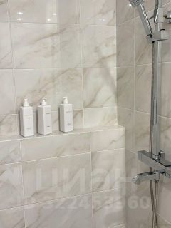 Ванная комната 4,5 м² с душевой, пол душевой из натурального антискользящего камня, в ванной есть зона для стиральной и сушильной машин.