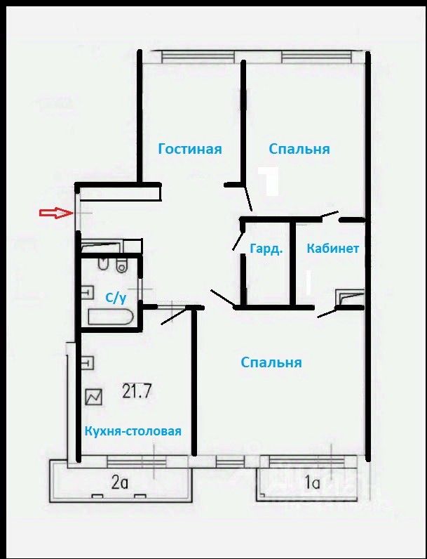 - 2 просторные изолированные спальни 37 и 27 кв.м.