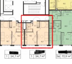 Продаётся квартира общей площадью 34,8 кв.м на 18-м этаже 18 этажного дома.