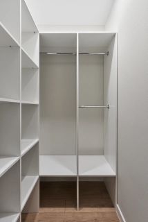 - Отдельная гардеробная, оборудована полками, позволяет с удобством разместить крупногабаритные вещи