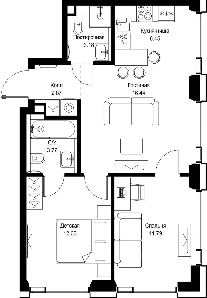 В ЖК SET продается 2-комнатная квартира площадью 56.83 м², расположенная в корпусе А, на 44 этаже 52 этажного дома.