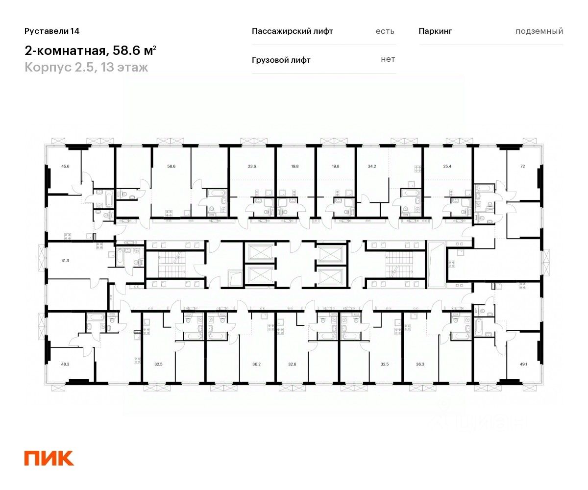 Продаётся 2-комн. квартира площадью 58,6 кв.м на 13 этаже 33 этажного дома (Корпус 2.5, Секция 1) проекта ПИК Руставели 14. Светлый просторный подъезд на уровне земли, функциональная планировка, большие окна, c отделкой.