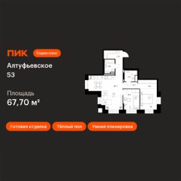 Продаётся 2-комн. квартира площадью 67,7 кв.м на 31 этаже 32 этажного дома (Корпус 1.1, Секция 4) проекта ПИК Алтуфьевское 53. Светлый просторный подъезд на уровне земли, функциональная планировка, большие окна, c отделкой.