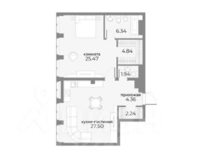 Планировка: кухня-гостиная, спальня, гардеробная, два с/у.