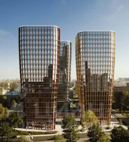 Инфраструктура: фитнес-зал с тренажёрами и бассейном, спа-салон, рестораны, кинозалы, террасы на кровле третьего этажа стилобата.