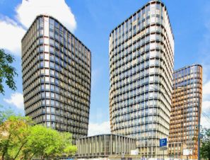 Комплекс находится в Пресненском районе Москвы, недалеко от станций метро Краснопресненская и Баррикадная. Рядом расположены Новый Арбат, набережная у Москвы-реки, Дом правительства.