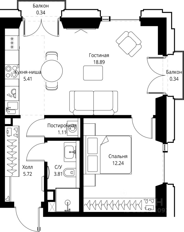 В ЖК SET продается 1-комнатная квартира площадью 47.86 м², расположенная в корпусе С, на 5 этаже 28 этажного дома.