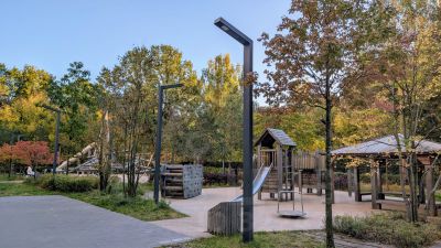 Вокруг дома два больших парка с прогулочными зонами, пляжем и волейбольной площадкой. На закрытой территории ЖК есть оборудованные детские площадки и детский сад Discovery.