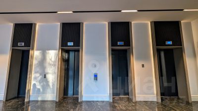 4 башни ЖК бизнес класса Дискавери Парк соединяет большой стилобат со скамейками, прогулочной зоной, тренажёрами и качелями для детей, вход только для собственников. Квартира находится на шестом этаже, отсюда как раз выход на стилобат.