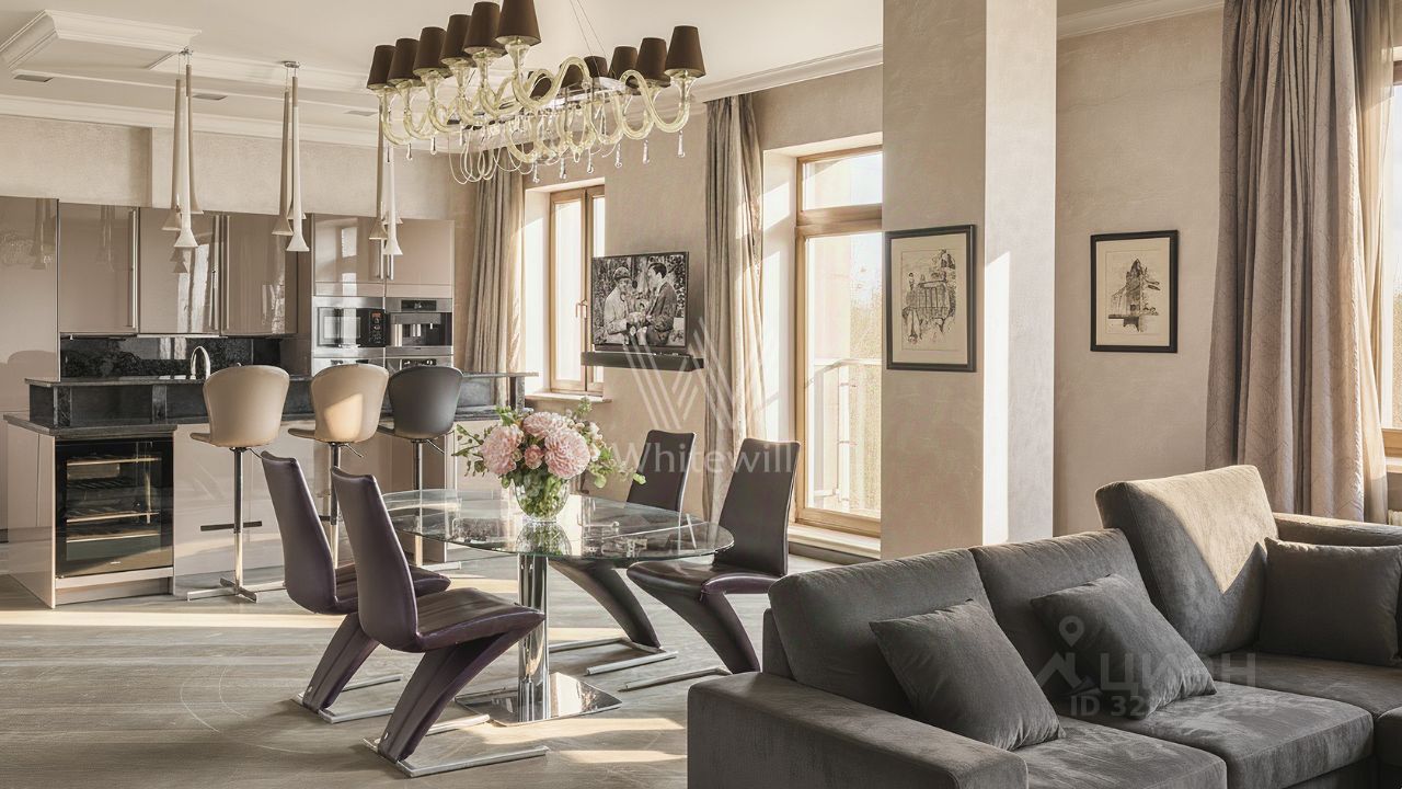 Квартира расположена в пятиэтажном корпусе на 11 квартир вдали от дороги. Светлый интерьер оформлен в современном стиле. Большие окна и потолки высотой 3,4 метра наполняют пространство светом. Открываются виды на две стороны, на сквер и во внутренний двор.