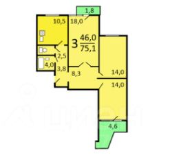 Общая площадь75,1 м²