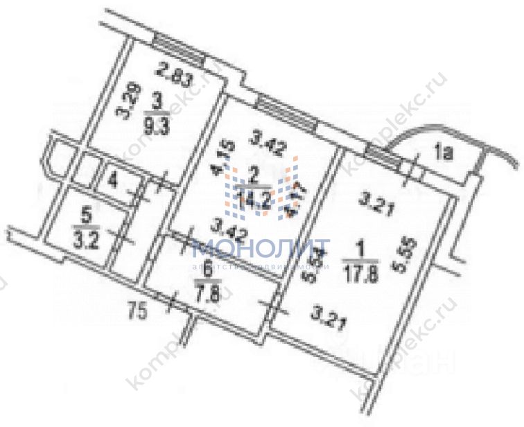 Общая площадь53,5 м²