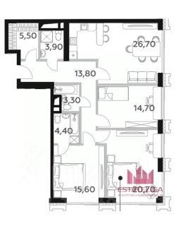 Общая площадь квартиры 111.8 метров с высотой потолков 3.1м., просторная кухня-гостиная, мастер-спальня с собственной гардеробной и полноценной ванной комнатой.