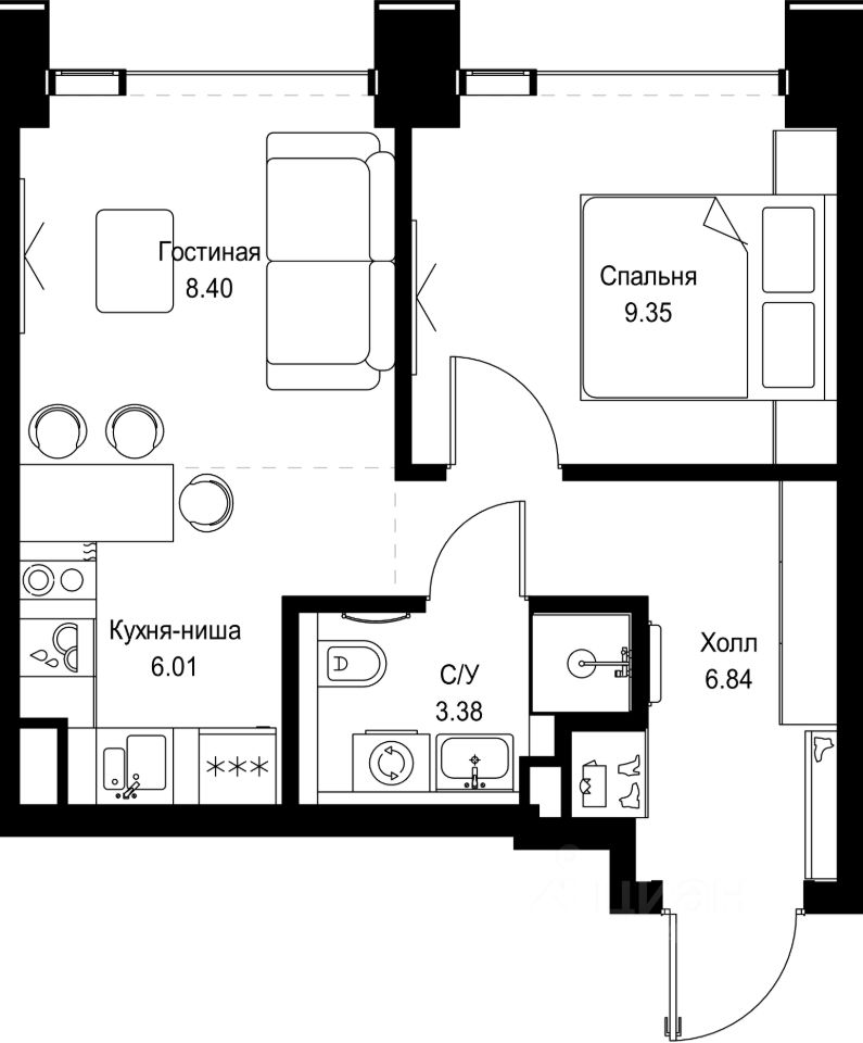 В ЖК SET продается 1-комнатная квартира площадью 33.98 м², расположенная в корпусе Б, на 59 этаже 59 этажного дома.