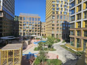 Современный новый комплекс с великолепным внутренним двором без машин. Различные площадки для детей, спорта и отдыха на свежем воздухе позволят всей семье прекрасно проводить время. В доме пассажирский и грузовой лифты, подземная парковка, дизайнерские лобби. В гранд-лобби в соседнем корпусе расположен консьерж, камин и место для отдыха для жителей всего комплекса.