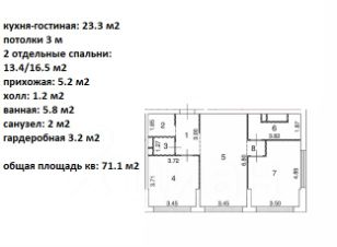 Продажа 3-комнатной квартиры (евроформата) в ЖК HEADLINER 6 корпусе (сдан 2025г.), общей площадью 71.1 кв.м., на 22 этаже.