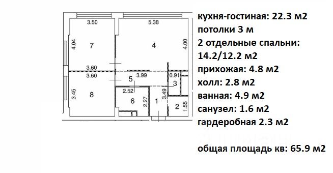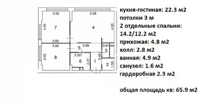Продажа 3-комнатной квартиры (евроформата) в ЖК HEADLINER 6 корпусе (сдан 2025г.), общей площадью 65.9 кв.м., на 22 этаже.