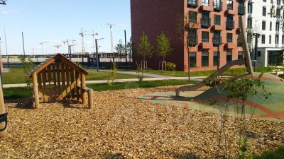 Малоэтажный жилой комплекс,окруженный лесом,есть бесплатная большая парковка.