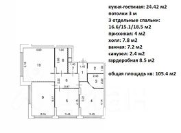 - 3 отдельные спальни: 16.6/15.1/18.5 м2