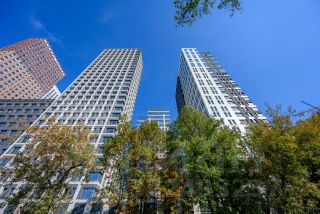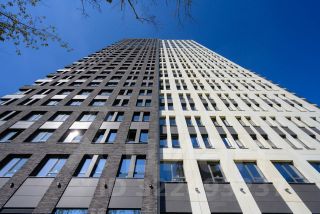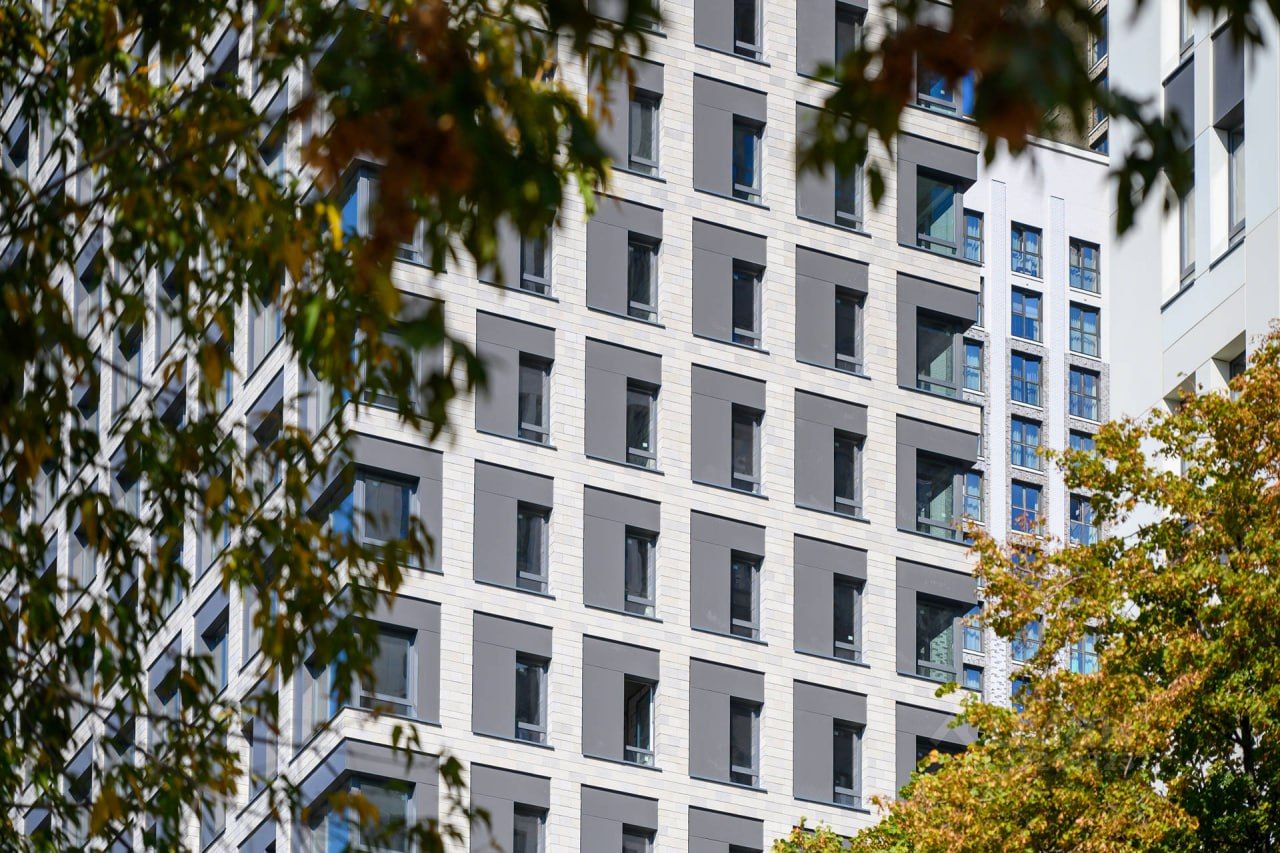 Комплекс состоит из двух домов высотой от 11 до 30 этажей, объединенных стильным стилобатом. Оформление фасадов выполнено с использованием современного вентилируемого керамогранита. В дизайнерском лобби с высокими потолками (4,9 м) предусмотрено панорамное остекление, ресепшен и уютная лаунж-зона. Для владельцев домашних животных на первом этаже спроектирована лапомойка.