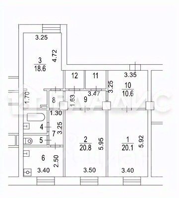 Комната 1 площадь 20,1 м2 (никто не живёт)
