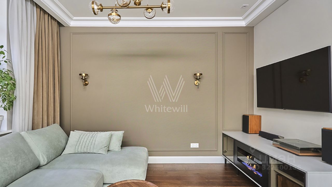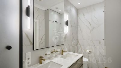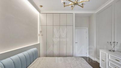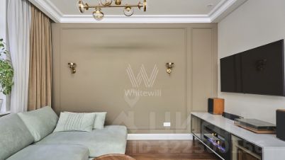 Квартира с одной спальней в комплексе бизнес-класса "Династия" в Хорошевском районе. Квартира площадью 56 м² расположена на восемнадцатом этаже в корпусе три. Выполнена авторская отделка в неоклассическом стиле, в оформлении использованы фактуры дерева и мрамора. Интерьеры украшены декоративными молдингами, карнизами и дизайнерскими люстрами.