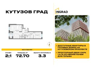 В жилом квартале, расположенном в в престижном Западном округе Москвы, продаётся 3-спальная квартира площадью 72.70 кв.м без отделки. Квартира расположена на 27 этаже 30-этажного дома, корпус 5, в жилом квартале бизнес-класса Кутузов Град (застройщик ГК Инград).