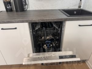 Квартира укомплектована мебелью и техникой: стиральная машина, посудомоечная машина, варочная панель, вытяжка, холодильник.
