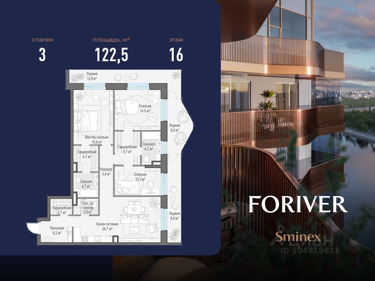 Прямая продажа от застройщика. В жилом квартале, расположенном в Даниловском районе Москвы, продаётся 3-комнатная квартира площадью 122.50 кв.м без отделки. Квартира расположена на 16 этаже 19-этажного дома, корпус Line 4, в жилом квартале бизнес-класса Foriver.