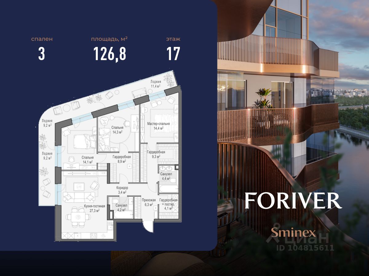 Прямая продажа от застройщика. В жилом квартале, расположенном в Даниловском районе Москвы, продаётся 3-комнатная квартира площадью 126.80 кв.м без отделки. Квартира расположена на 17 этаже 19-этажного дома, корпус Line 1, в жилом квартале бизнес-класса Foriver.