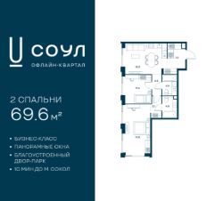 Продается 2-к. квартира номер 584 общей площадью 69.6 кв.м. на 3-м этаже 24 этажного дома, Корпус 9. С предчистовой отделкой.