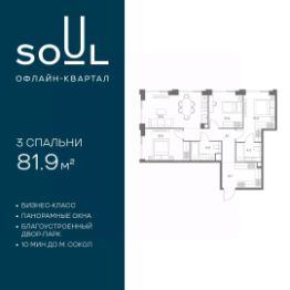 Продается 3-к. квартира номер 733 общей площадью 81.9 кв.м. на 13-м этаже 24 этажного дома, Корпус 9. С отделкой White Box Max.