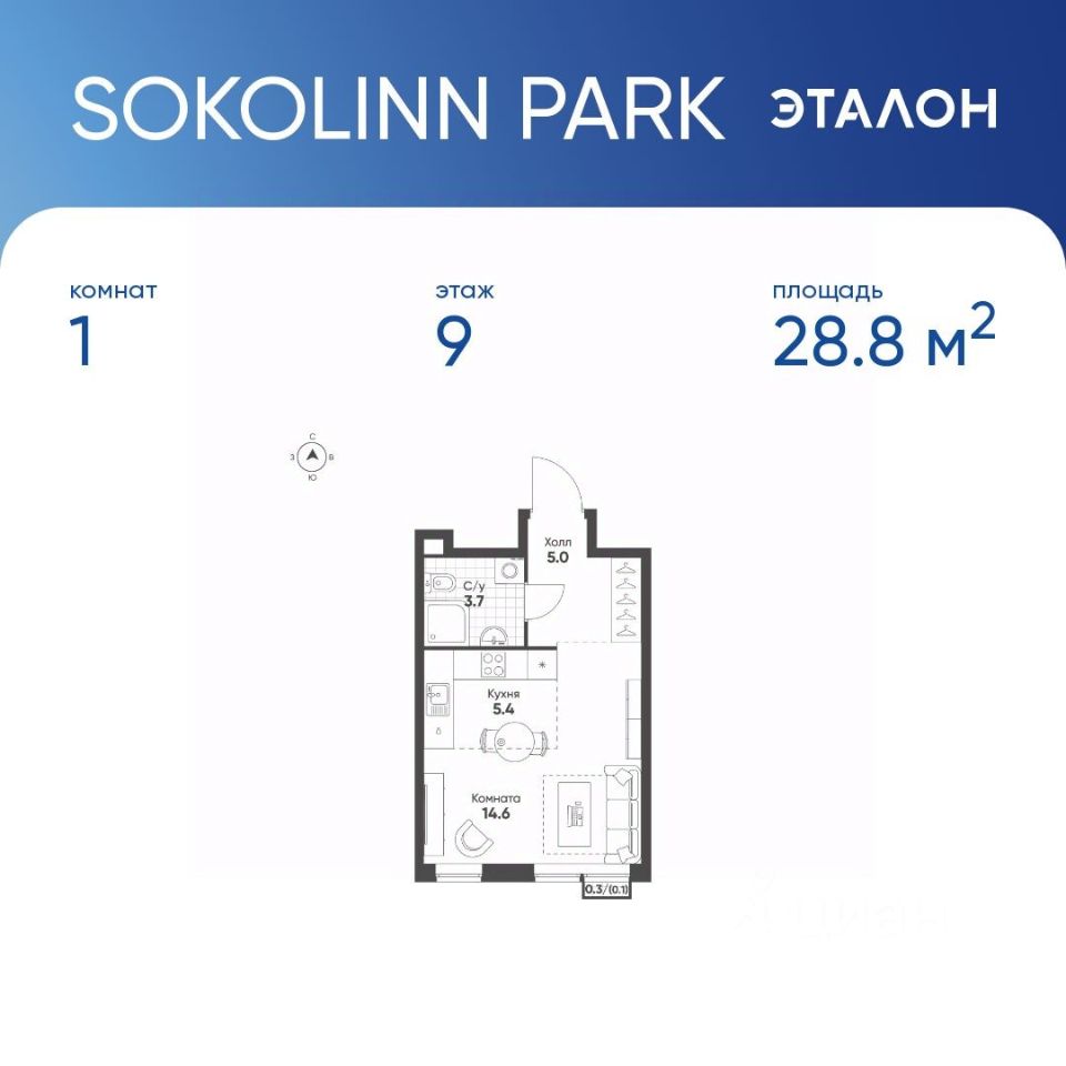 Продается квартира 68, по адресу г. Москва, ВАО, Богородское, 3-я Гражданская ул., влд.1, корпус Sokolinn Park, корпус 1 в Sokolinn Park на 9 этаже, с площадью 28.8 м2.