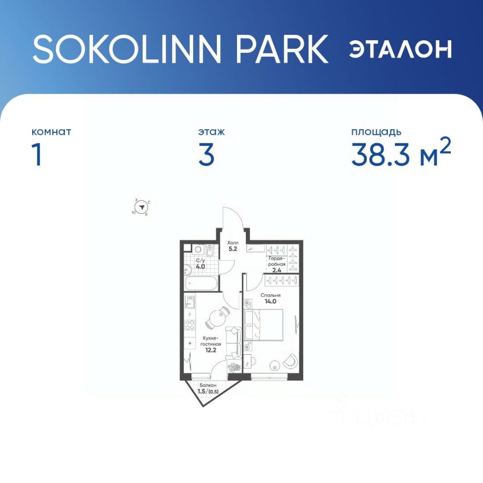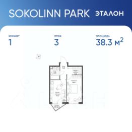 Продается квартира 12, по адресу г. Москва, ВАО, Богородское, 3-я Гражданская ул., влд.1, корпус Sokolinn Park, корпус 1 в Sokolinn Park на 3 этаже, с площадью 38.3 м2.