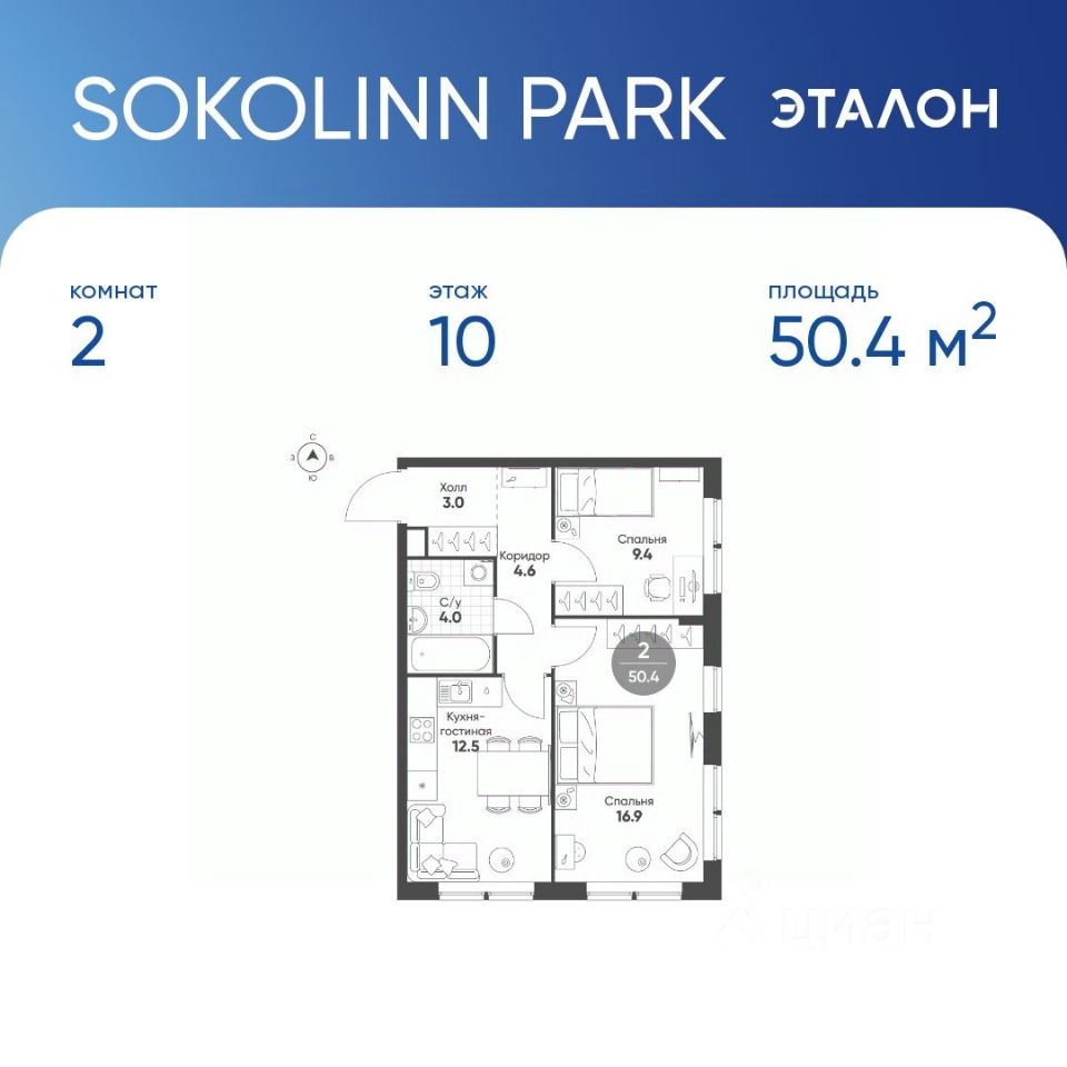 Продается квартира 71, по адресу г. Москва, ВАО, Богородское, 3-я Гражданская ул., влд.1, корпус Sokolinn Park, корпус 1 в Sokolinn Park на 10 этаже, с площадью 50.4 м2.