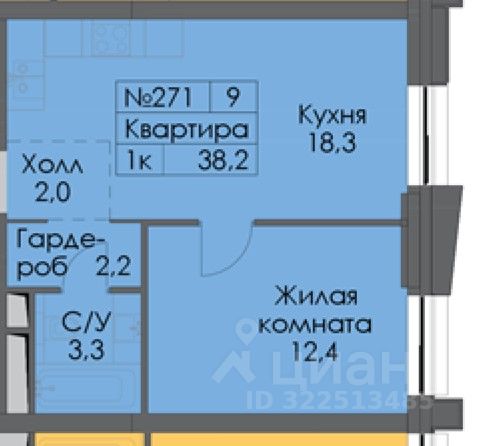 Общая площадь 38,2 м2.