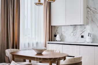Очень развитая инфраструктура района - вокруг только новые ЖК бизнес-класса с магазинами, ресторанами и салонами красоты. В 5 минутах пешком фитнес-центр с бассейном.