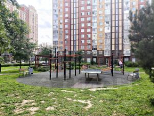 Спокойный двор и приятные соседи, во дворе всегда есть свободные парковочные места. Чистый подъезд, есть мусоропровод и два лифта, во дворе имеются спорт площадки.